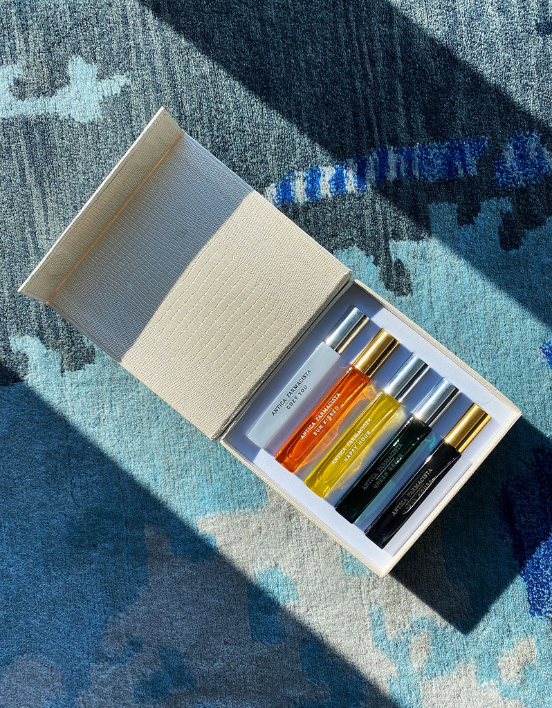 THE TRAVEL SET: Discover all five of our new fine fragrances: deep, sultry After Hours • quiet, weightless Cozy You • vibrant, botanical Green Green • juicy, sweet Happy Hour • optimistic, zesty Sun Kissed.