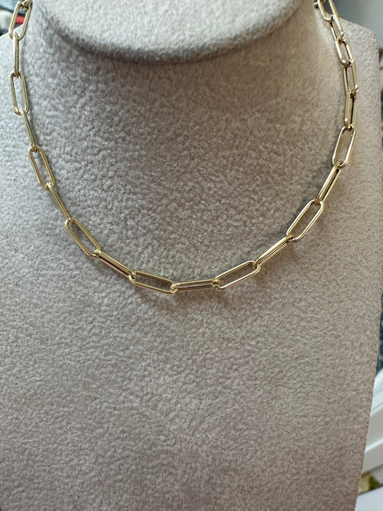 Small paperclip chain is 18" in yellow gold available $695
