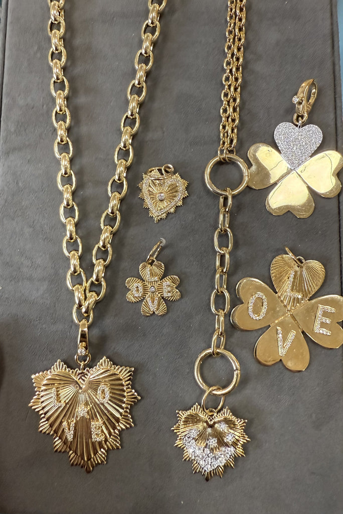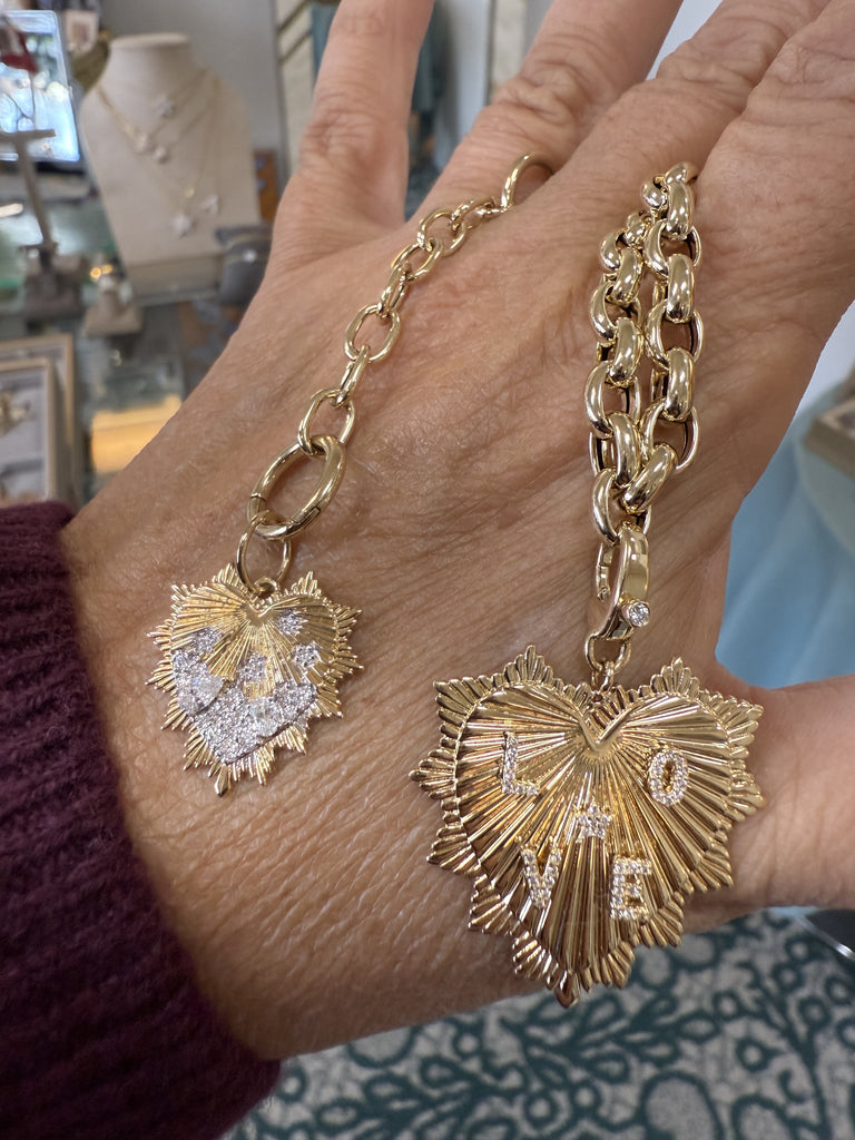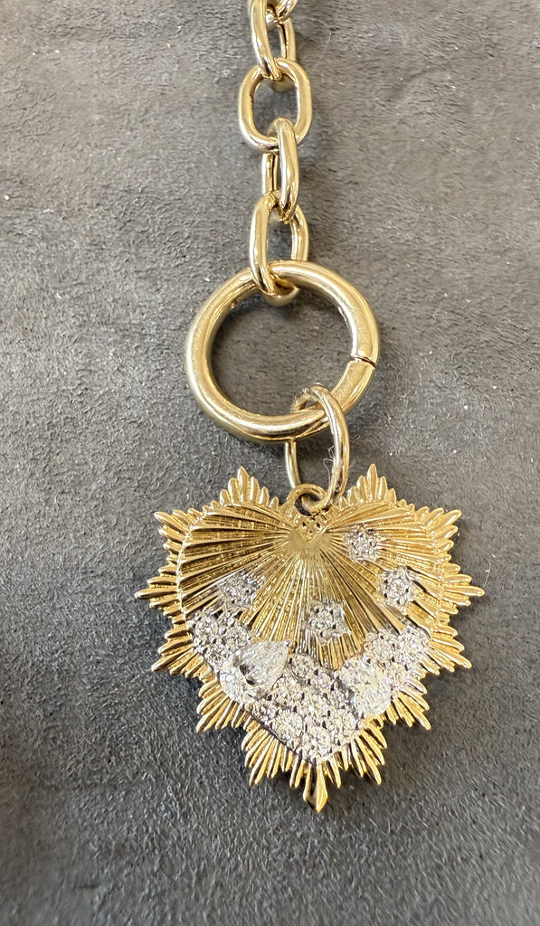 Medium heart with pave diamond stars and 2 bigger diamonds