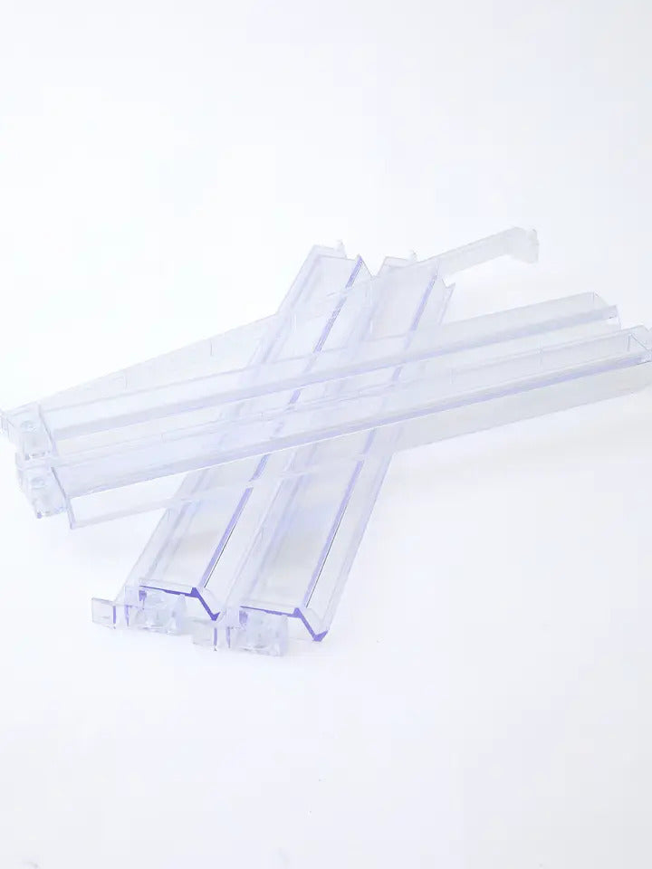 Each set includes four clear acrylic racks with attached pushers, with a stack length of 18.5 inches. Don't forget to complement your set with our Let's Rack and Roll bag, perfect for storing your racks and pushers in style between games.