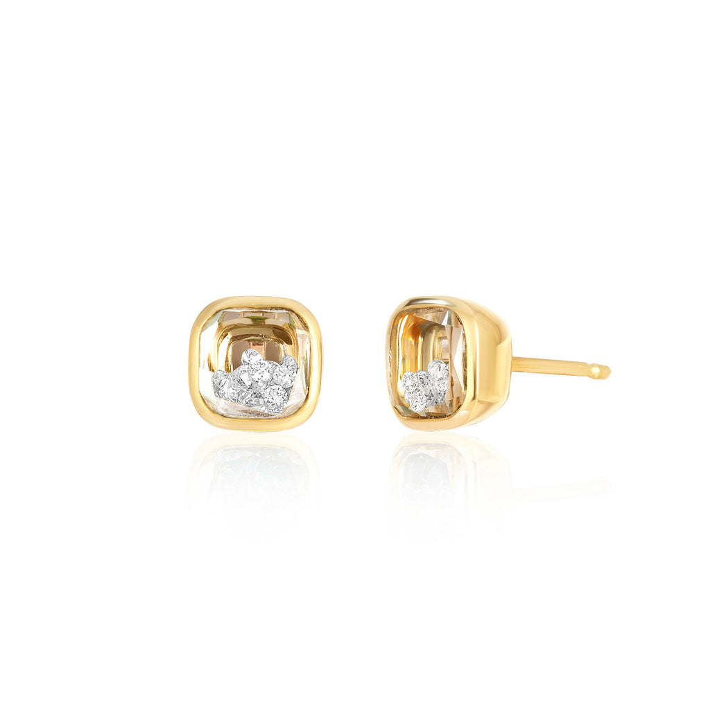 The Naipe Shaker studs cushion in 18 karat gold feature a cushion-shaped Kaleidoscope Shaker™ filled with diamonds. To preserve this piece, consult the care instructions.